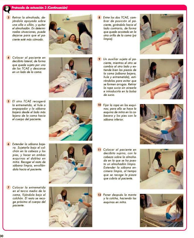 Este vídeo resume la técnica. Esta pensado para el ámbito hospitalario por lo que además de la cama desocupada de un habitación estándar explica otros modelos: